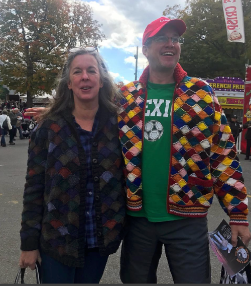 About midway through Saturday morning, I was delighted to run into Michael Hampton of Hampton Fiber Mill, wearing his own “Not a Prada Sweater”. TM.